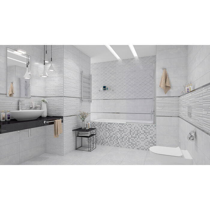 Базовые плитки во всех цветовых вариациях представлены в формате 20*60 см, при этом поверхность плиток хорошо передает рисунок натурального камня. Отдельные варианты плитки создают на своей поверхности иллюзию плотной укладки тонких каменных брусков. Они могут быть одного цвета или представляют собой сочетание всех трёх базовых цветов коллекции. Также представлены декоративные плитки, украшенные ромбовидным орнаментом, напольная плитка формата 40*40 см, выполненная в той же цветовой гамме, и узкие бордюры, как отличный переход между цветовыми вариациями плитки коллекции.Характеристики