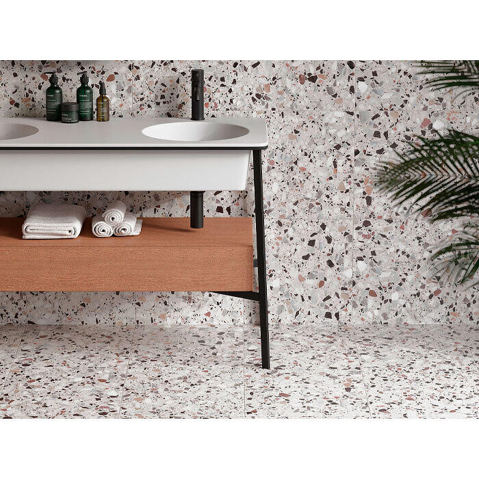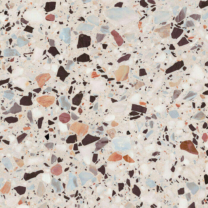 Коллекция Fancy Stone имитирует роскошный венецианский терраццо – бесшовный мозаичный пол из мраморной и каменной крошки, скреплённой цементом в единый холст. Динамичный рисунок из вкраплений разного цвета и размера обладает высокой декоративностью и дает широкий простор для творчества. Это универсальное покрытие позволяет выкладывать ванную комнату от пола до потолка или акцентировать отдельные зоны как в жилых, так и в коммерческих помещениях. Интерьер идеально дополнят аксессуары и мебель самых разных оттенков.Характеристики