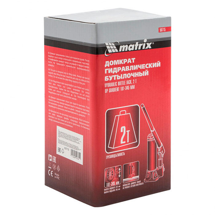 Домкрат Matrix 50715 гидравлический бутылочный 2 т