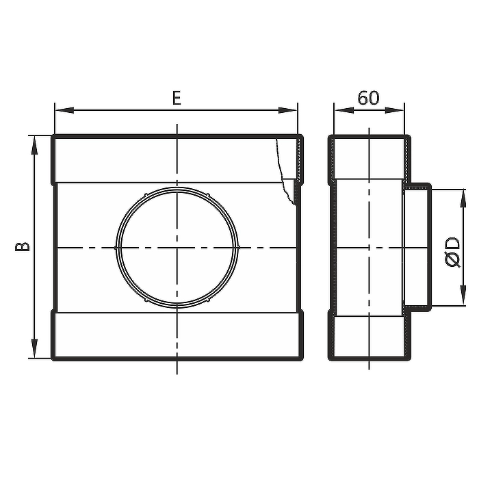 Тройник ERA 612ТФ10П D100 мм плоский с выходом на фитинг 60*120 мм