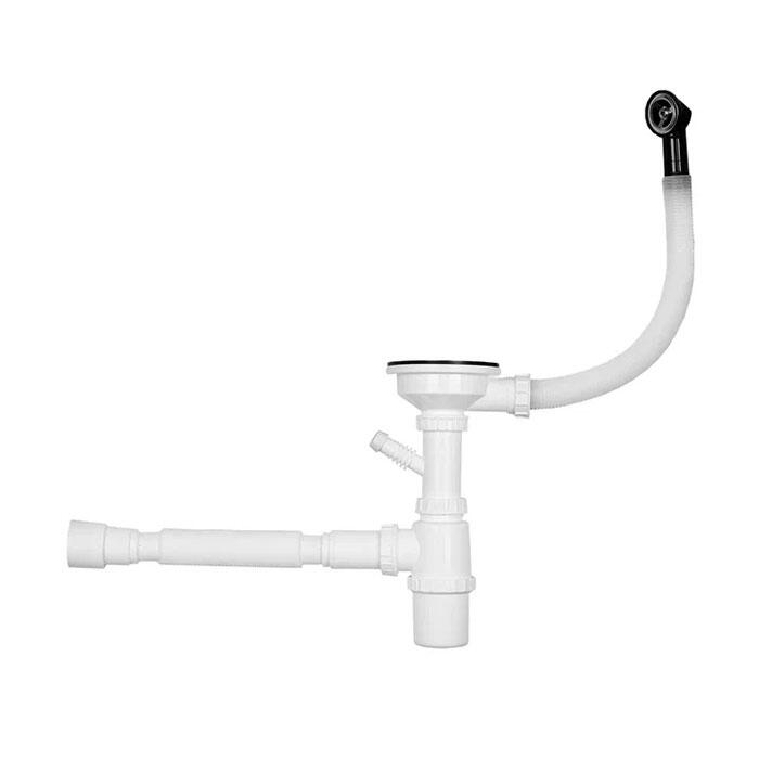 Сифон для кухонной мойки Wisent GER013 с выпуском 3 1/2" с универсальным переливом, из пластика, белый.Характеристики