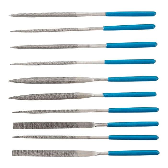 Набор применяется в слесарных работах для зачистки, снятия заусенцев или выравнивая поверхностей. Прочное полотно изготовлено из качественного материала, благодаря чему обеспечивается стойкость при высоких нагрузках. Инструмент позволяет затачивать ножовки, пилы, зубья цепи, удалять мелкие неровности которые появляются в результате слесарной обработки. Рукоятка удобно располагается в руке во время рабочего процесса.Характеристики