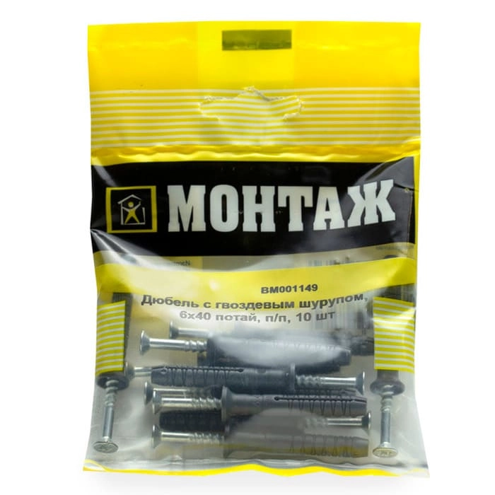 Дюбель-гвоздь 6*40 мм Монтаж потай 10 шт