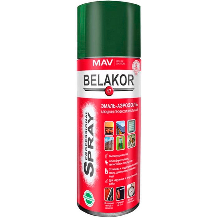 Эмаль-аэрозоль MAV Belakor 17 алкидная RAL 6005 зеленый мох глянцевая 520 мл