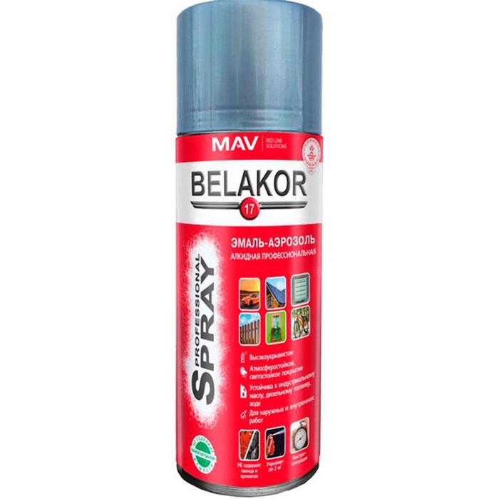 Эмаль-аэрозоль MAV Belakor 17 алкидная RAL 9007 серебристый металлик глянцевая 520 мл