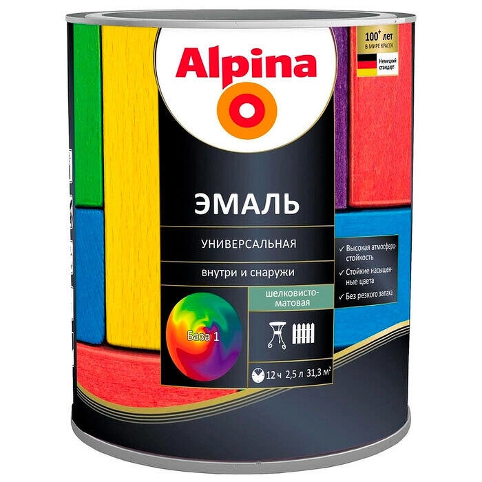 Эмаль Alpina универсальная База 1 шелковисто-матовая 2.5 л белая