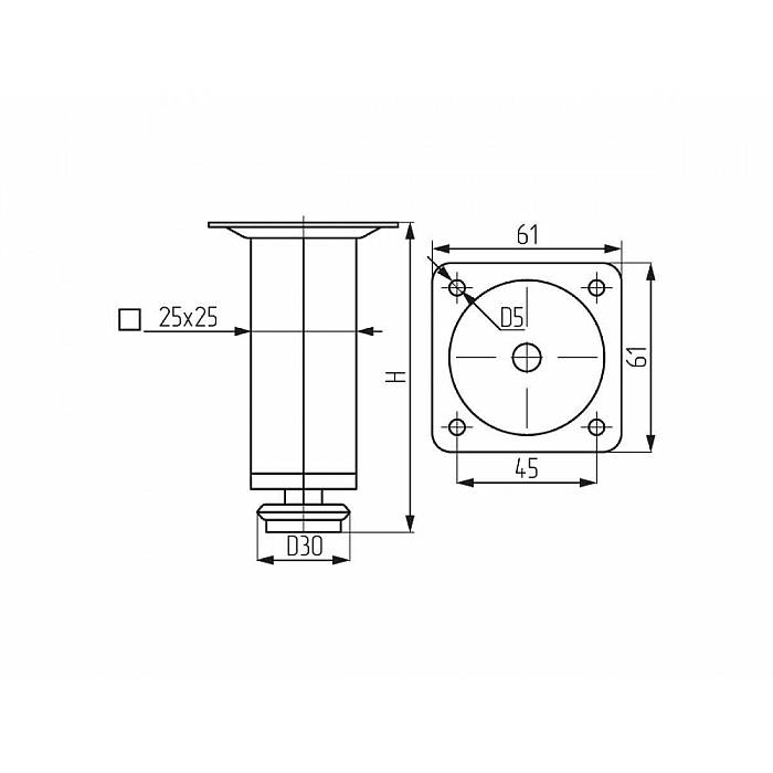 Опора мебельная Starfix SMF-4617 квадратная 25*150 мм хром
