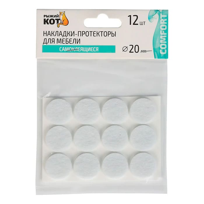 Протекторы для мебели Рыжий Кот самоклеящиеся 20 мм белый 12 шт
