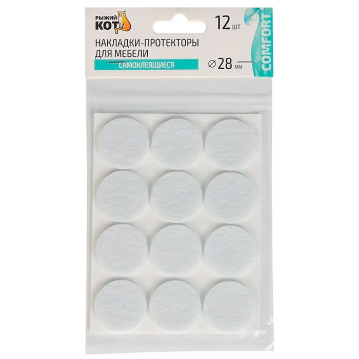 Самоклеящиеся накладки-протекторы для мебели Рыжий кот 12 шт, 28 мм, белый 105205 предназначены для защиты полов из любого покрытия от сколов, царапин, потертостей, делает мебель более устойчивой.Характеристики