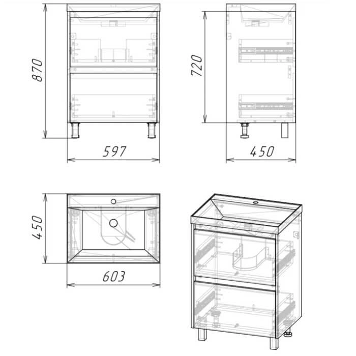 Тумба под умывальник Axus Джой 60 – лаконичная напольная модель с двумя дверцами. Корпус и фасады изготовлены из ЛДСП комбинированной расцветки. Открывается за фасады. Комплектуется с классическим умывальником Marko Слим 60.Характеристики