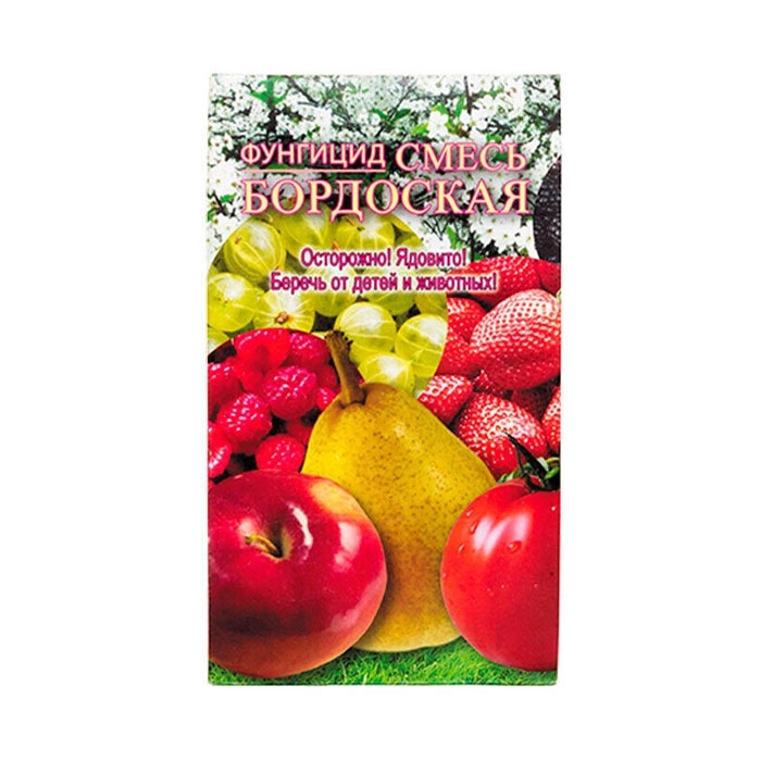 Фунгицид для приготовления бордоской жидкости для опрыскивания плодовых, овощных, ягодных культур против комплекса болезней (на яблоне, груше, картофеле и огурце открытого и защищенного грунта, луке (кроме лука на перо), сливе, черешне, смородине, крыжовнике, землянике, малине).Производитель: ОАО "Борисовский завод пластмассовых изделий", Республика Беларусь, 222511, Минская обл., г.Борисов, ул.Даумана, 97