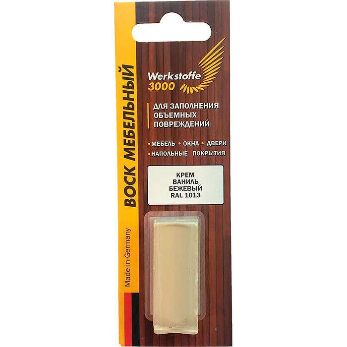 Воск мебельный - натуральный минеральный воск, предназначен для заполнения объемных повреждений (сколов, отверстий и т.д.).Характеристики