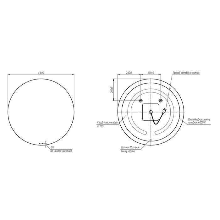 • Форма зеркала круглая