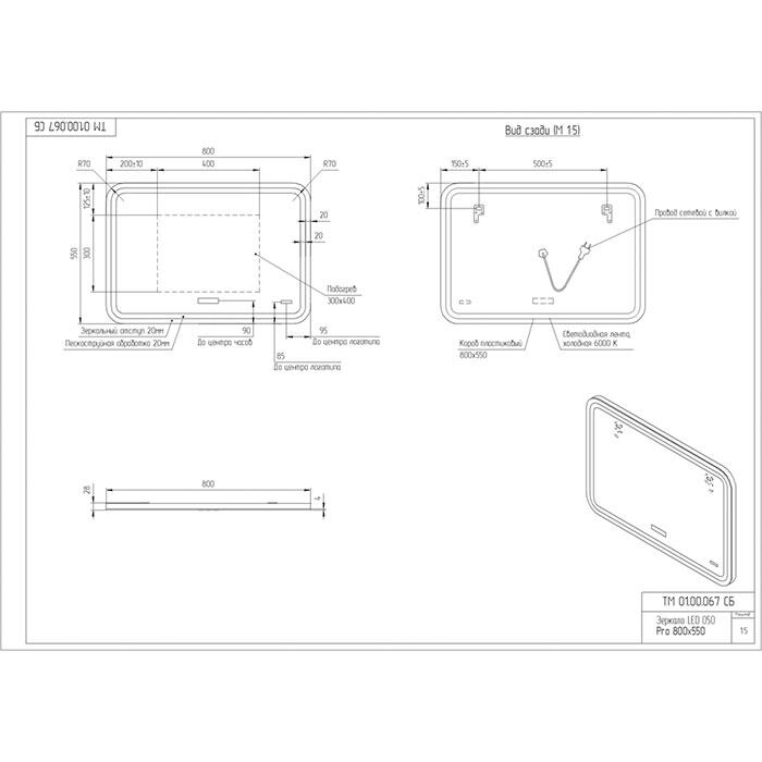 Зеркало Cersanit Led Design Pro 050 KN-LU-LED050 с подсветкой с антизапотиванием и часами 800*550 мм