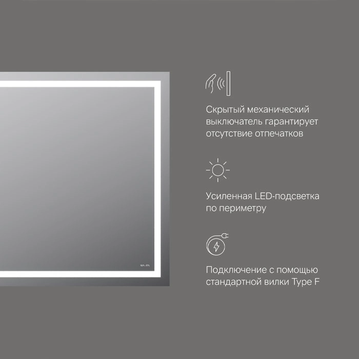 - Форма зеркала прямоугольная
