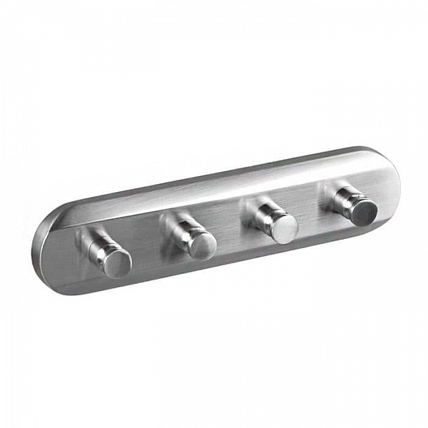 Планка 4 крючка. Крепится к стене шурупами. Произведено из цинкоалюминиевого сплава с покрытием из матового никеля.Характеристики