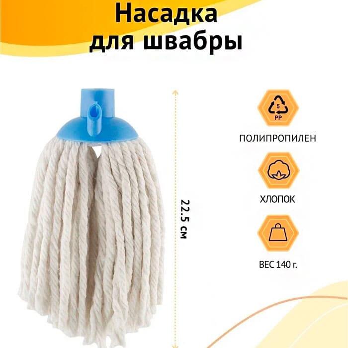 Сменная насадка для швабры подходит для мытья всех видов напольных покрытий: линолеума, ламината, паркета, кафельной плитки, мрамора. Форма насадки помогает убираться в труднодоступных местах. Хлопок, который входит в состав волокна, отлично впитывает жидкости.Характеристики
