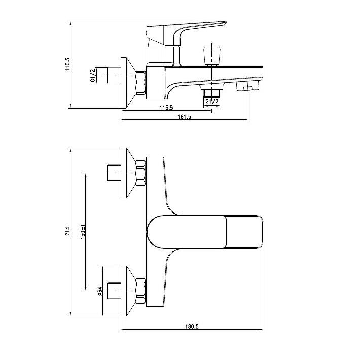 - Длина излива 161.5 мм