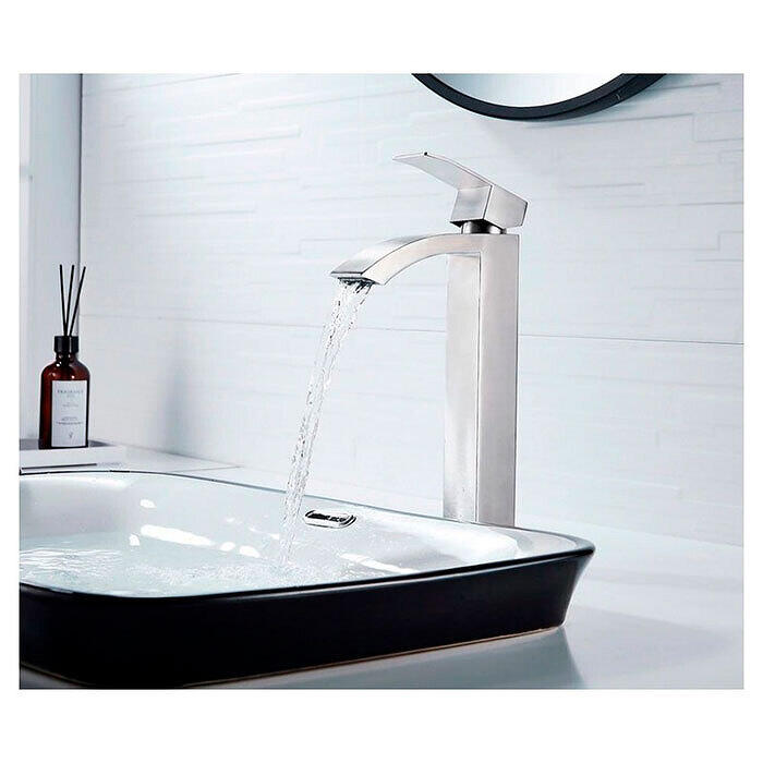 Смеситель для умывальника Ledeme L71117 - современная однорычажная модель с высоким каскадным изливом, изготовленная из прочной нержавеющей стали. Смеситель предназначен для установки на горизонтальную поверхность, идеально подойдет для монтажа с раковиной-чашей.Характеристики