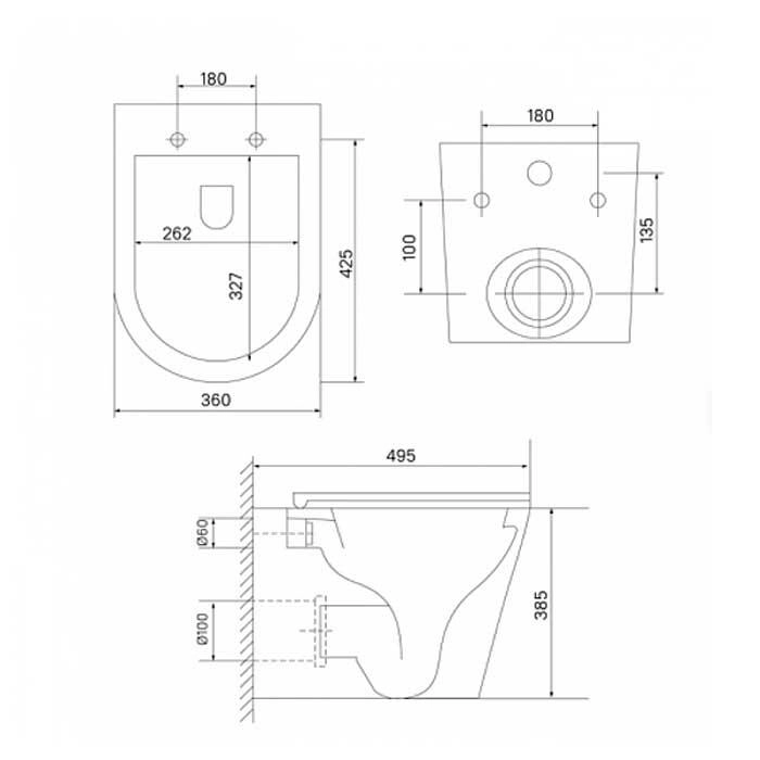 Подвесной унитаз Axes современной округлой формы с системой смыва «торнадо» и скрытым гидрозатвором — стильное технологичное решение для ванной. Одна из самых эффективных систем смыва: струя воды из отверстия в чаше создает эффект водоворота, полностью очищая всю внутреннюю поверхность унитаза.Характеристики