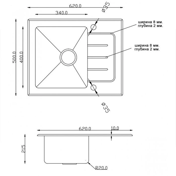 - Форма мойки прямоугольная