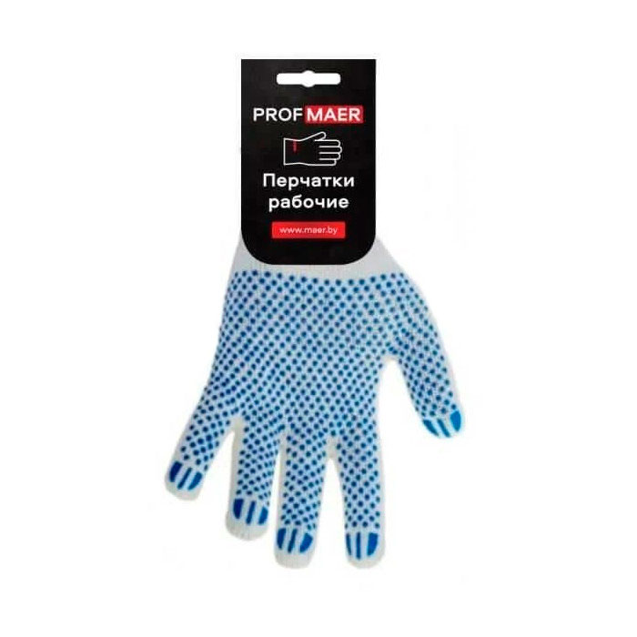 Перчатки хлопчатобумажные Profmaer 7.5 класс 5-нитка с ПВХ протектор с ярлыкодержателем