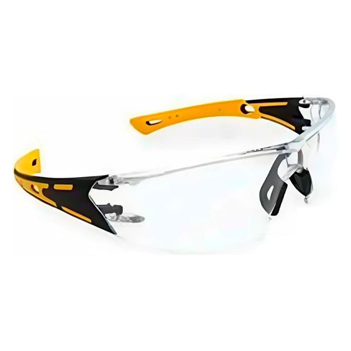 Профессиональные защитные очки Универсал берегут глаза от пыли, опилок и мелких частиц материала. Материал линзы — поликарбонат. Дужки выполнены из двух компонентов — АБС и ПНД. Мягкий носоупор снижает дискомфорт, продлевает время работы в очках, плотно и без давления прилегая к переносице. Вентиляционные отверстия в широкой части дужки необходимы для использования поверх корригирующих очков, кроме того предусмотрено отверстие в дужках для шнурка.Характеристики