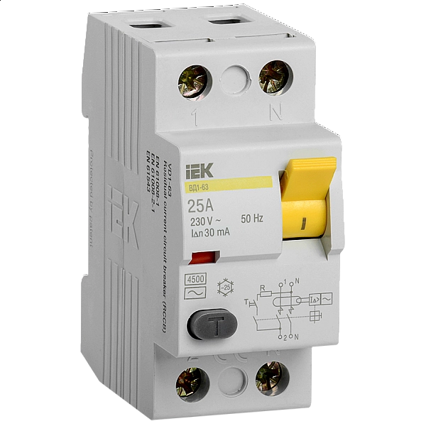 Устройство защитного отключения IEK ВД1-63 2Р 25А 30мА