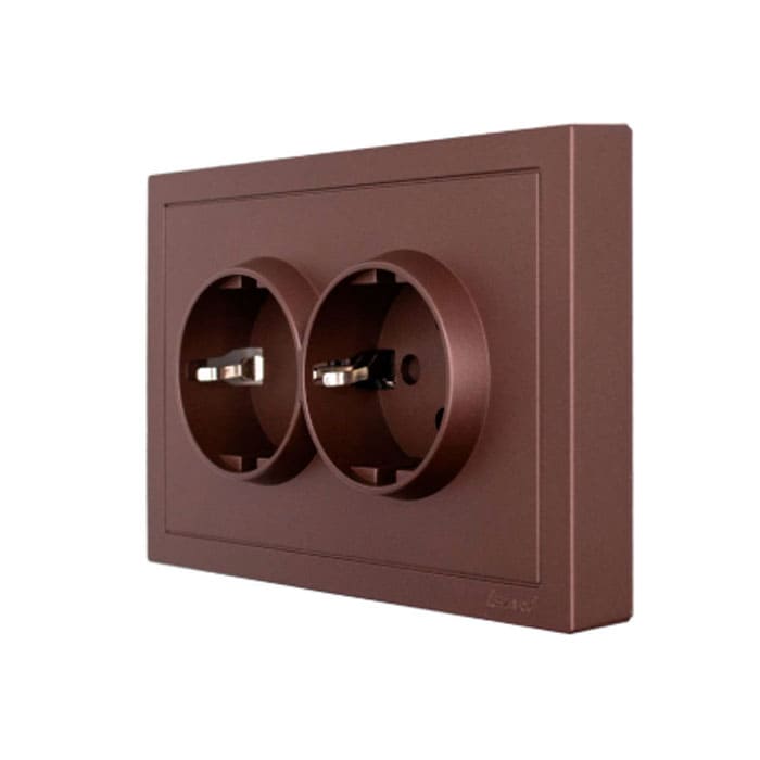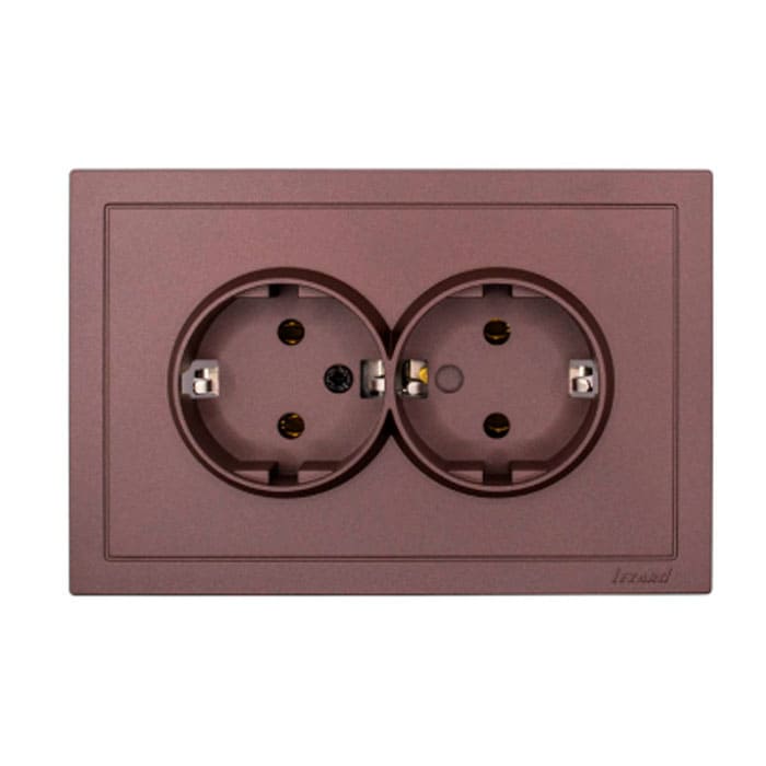 Розетка Lezard Zima 704-7300-127BQC 2 места безвинтовой c заземлением ПБТ шоколад