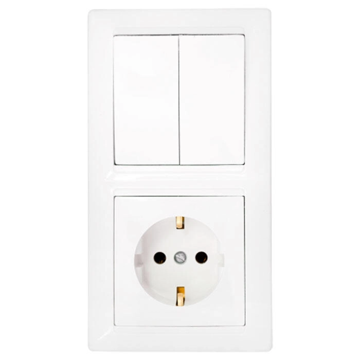 Блок серии Стиль Bylectrica состоит из двух электроустановочных элементов: двухклавишный выключатель плюс розетка штепсельная для скрытой установки. Блок предназначен для коммутации электрической цепи переменного тока с номинальным напряжением 250 В. Материал корпуса изготовлен из прочного пластика ABS.Характеристики