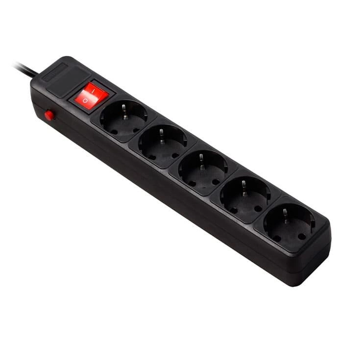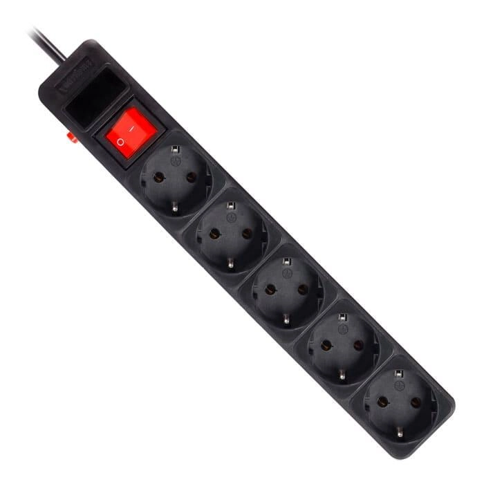 Удлинитель с сетевым фильтром Smartbuy SBSP-5-18-K 5 гнезд с заземлением с выключателем ПВС 3*1 мм.кв 1.8 м черный