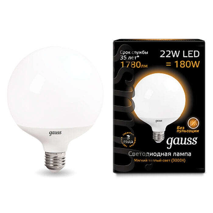 Лампа светодиодная Gauss LED G125 E27 22W 3000K 105102122